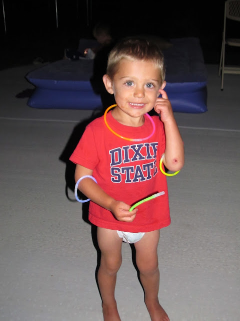 Today we all headed out to the lake for some boating summer sun. We set up the camp along the shore and the kids traded off tubing and skiing. We headed home for a scrumptious dinner and an outdoor movie, Chasing Mavericks, complete with concession stand. Before the movie we broke the pinata that we didn't have time to do the day before. All our kids fell asleep during the movie, except for Mary.